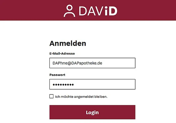 Sie haben weder einen DAP-Account, noch eine DAViD: Neuregistrierung erforderlich.